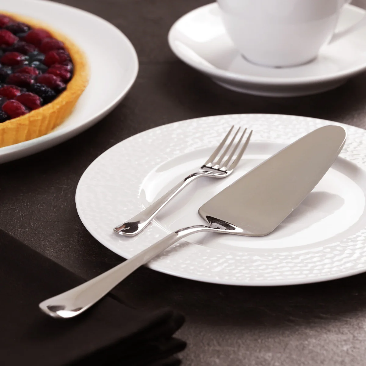 12 fourchettes de table, 12 cuillères de table, 12 cuillères à café, 12 couteaux de table, 12 fourchettes dessert, 12 couteaux dessert, 12 fourchettes à gateau, 1 cuillère de service, 1 fourchette de service, 1 louche et 1 pelle à tarte