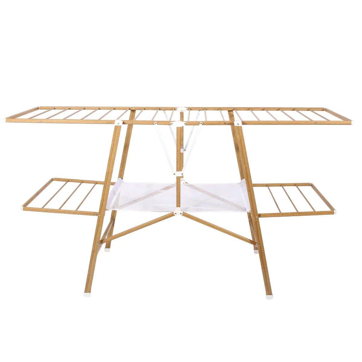 - Pliage et dépliage facile. Filet à structure respirante en maille ouverte pour un séchage rapide. Revêtement imitation bois rend notre séchoir à linge à la fois classique et design. L’étendoir peut être plié et rangé dans un coin