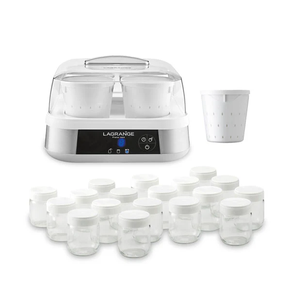 Les familles nombreuses apprécieront ce lot Lagrange composé de la yaourtière fromagère Ligne de 9 pots ainsi qu’un set de 9 pots supplémentaires pour avoir en permanence des yaourts faits-maison prêts au réfrigérateur.