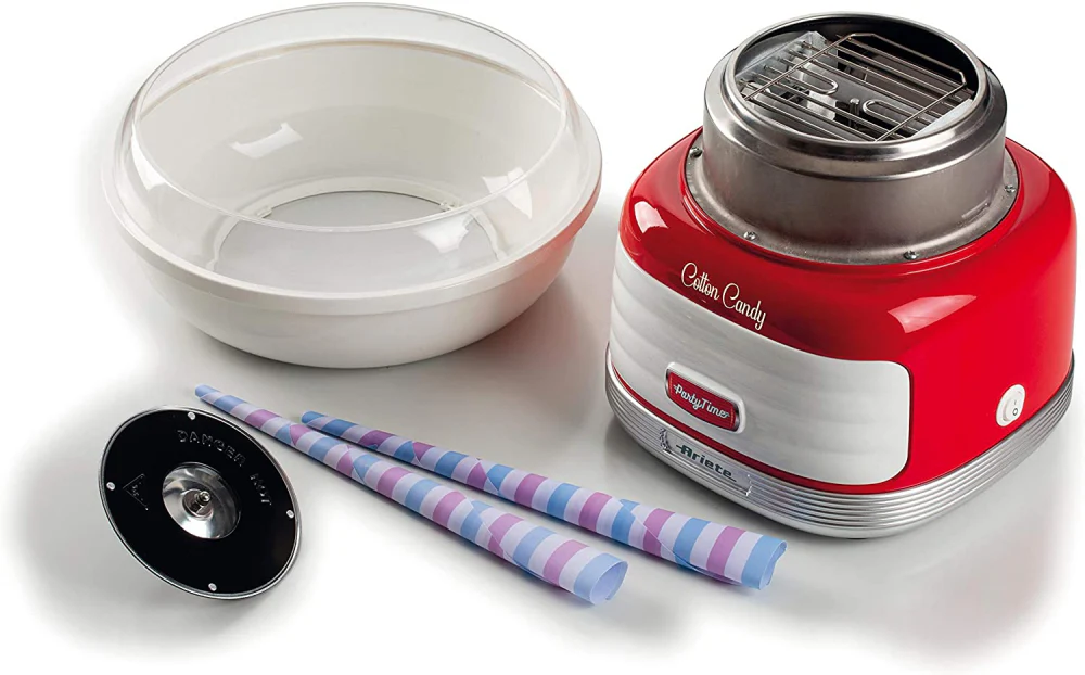 La machine à barbe à papa Party Time Ariete a un aspect ludique et vintage. Son aspect rouge éclatant et ses formes rappelant les années 50 ajoutent de l’esthétisme à la qualité de ce produit.
