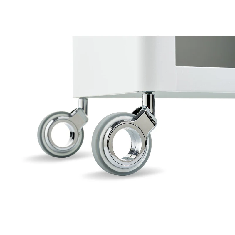 Avec 4 roues pour un déplacement facile. Les roues sont très robustes et designs, ce qui ajoute une touche distinctive et innovante au meuble.