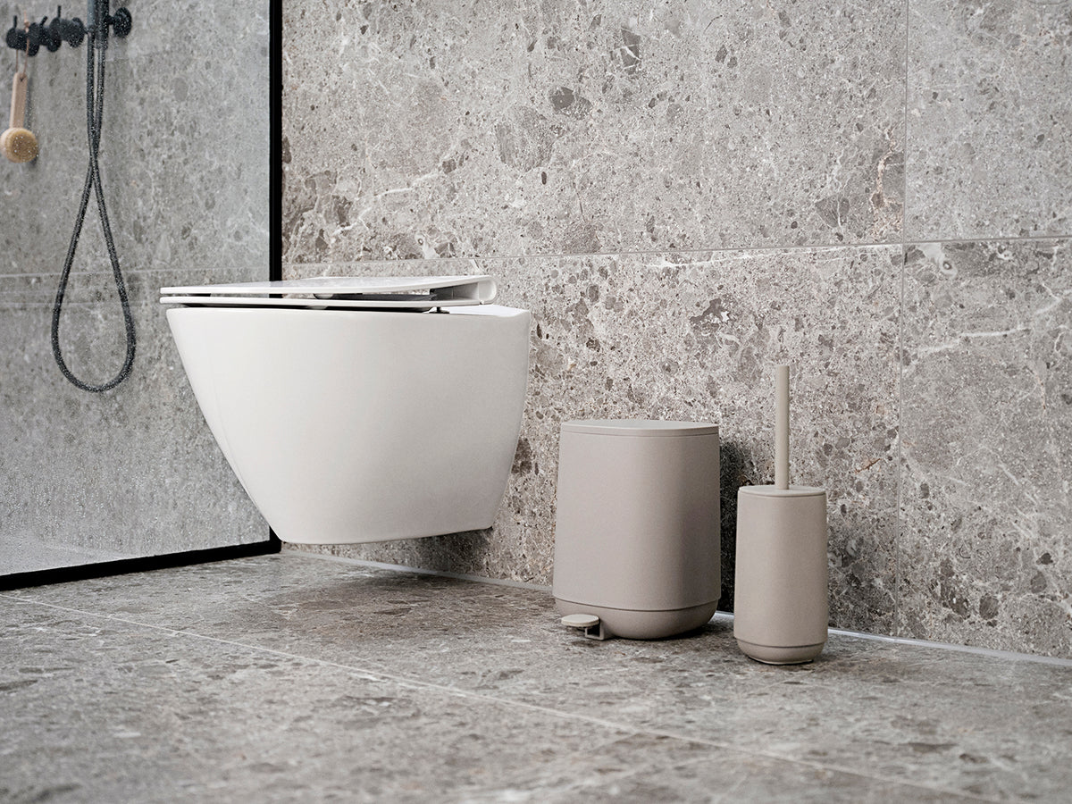 La série de salle de bain TIME attire incontestablement le regard. Trois des quatre produits de la série, à savoir le distributeur de savon, le gobelet de brosse à dents et la brosse de toilette, sont en béton avec quelques détails en plastique. En revanche, la poubelle à pédale est en plastique ABS pur, mais est assortie aux produits en béton en termes de couleur, de sorte que la série apparaît comme un ensemble. Le béton est connu pour son charisme et sa naturalité sans compromis et est de plus en plus en vogue depuis quelques années. Il est à la fois dur, doux et très beau. De plus, il s’agit d’un matériau un peu plus économe en énergie que la céramique, par exemple, car il n’a pas besoin d’être cuit à haute température.
