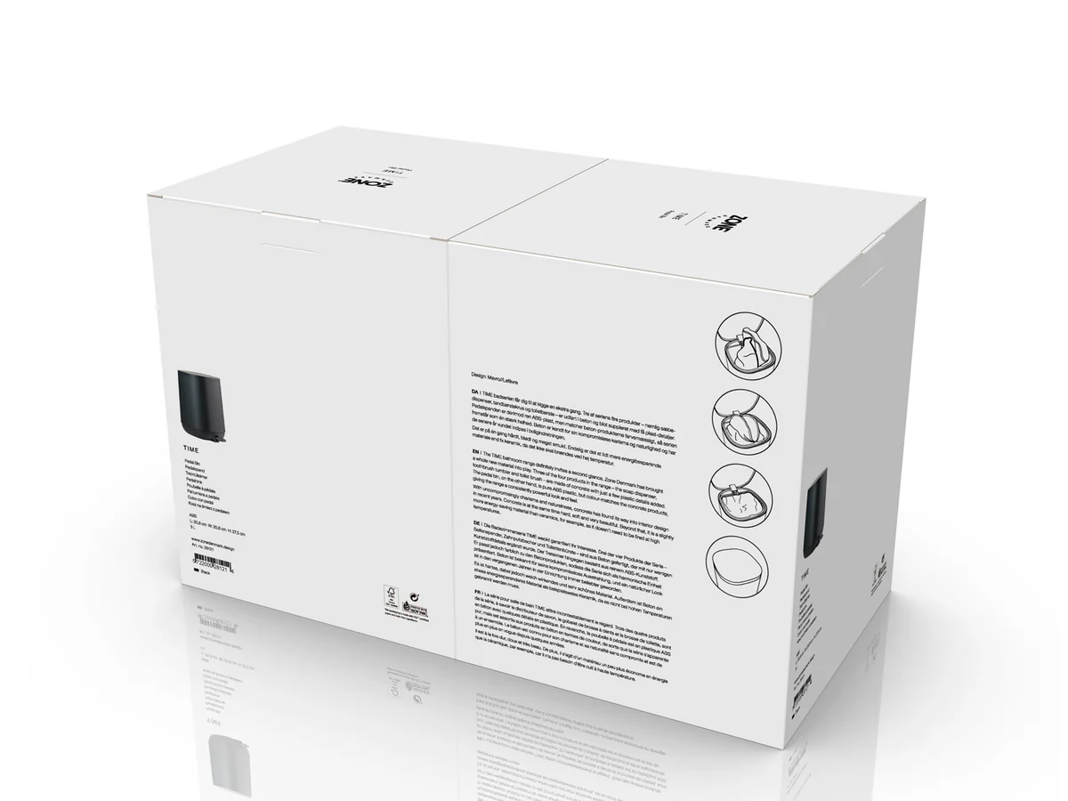 La série de salle de bain TIME attire incontestablement le regard. Trois des quatre produits de la série, à savoir le distributeur de savon, le gobelet de brosse à dents et la brosse de toilette, sont en béton avec quelques détails en plastique. En revanche, la poubelle à pédale est en plastique ABS pur, mais est assortie aux produits en béton en termes de couleur, de sorte que la série apparaît comme un ensemble. Le béton est connu pour son charisme et sa naturalité sans compromis et est de plus en plus en vogue depuis quelques années. Il est à la fois dur, doux et très beau. De plus, il s’agit d’un matériau un peu plus économe en énergie que la céramique, par exemple, car il n’a pas besoin d’être cuit à haute température.