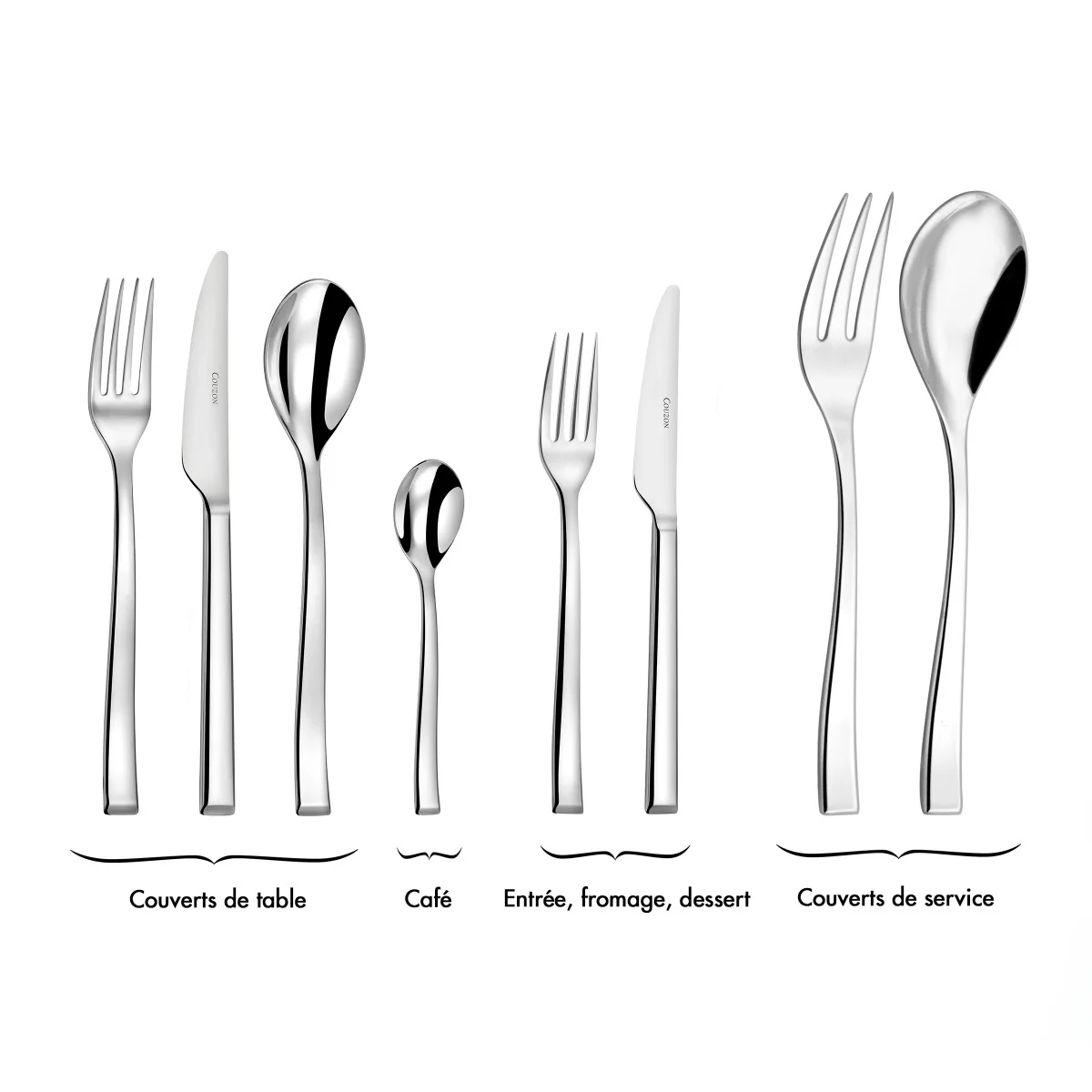 Ensemble de 48 couverts de la collection Side en coffre bois. Acier inoxydable 18/10 et finition poli-miroir.
